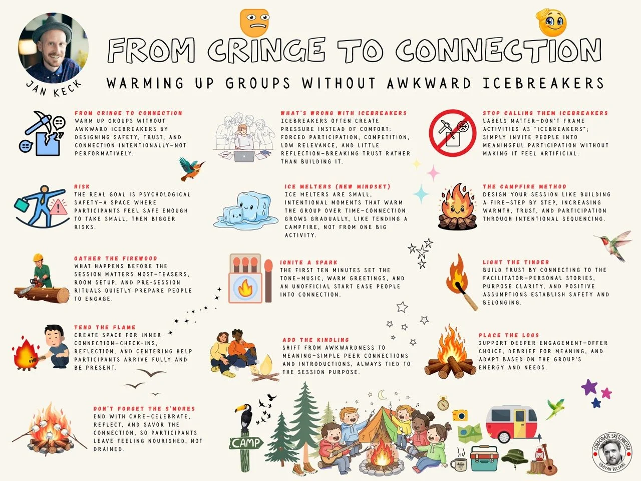 A set of guiding principles and tools (not just plug-and-play games) for designing meaningful opening moments that increase engagement, trust, and belonging in every session you lead - online and in-person